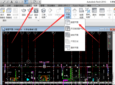 1.首先我们找到对话框的视图,点击视图选项卡---平面视图命令---楼层平面选项