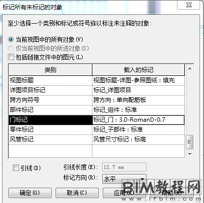 5.此方法不仅可以快速对门窗进行标记,也可以对其他的类型进行快速标记,在对这些类型进行标识前需要预先对这些类型的族标记载入到项目当中。