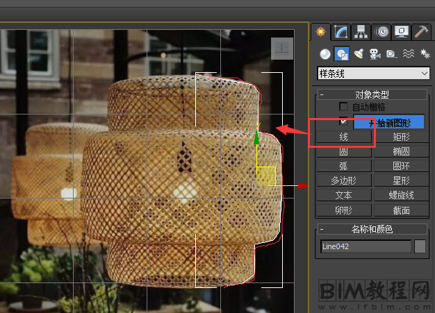 7、线段修改成想要的圆滑线段后点击修改面板下车削命令,类似于旋转放样,即可生成灯笼轮廓,如图所示。
