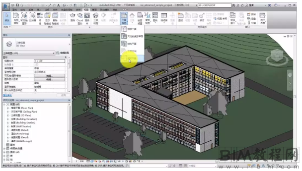 在“视图”选项卡中,单击“平面视图”并选择“面积平面”在“面积平面”对话框中,选择类型默认情况下,可选择2个类型:“总建筑面积”和“出租面积”在本示例中,我们将先制作总建筑面积平面选定类型后,选择“标高1”,然后单击“确定”。
