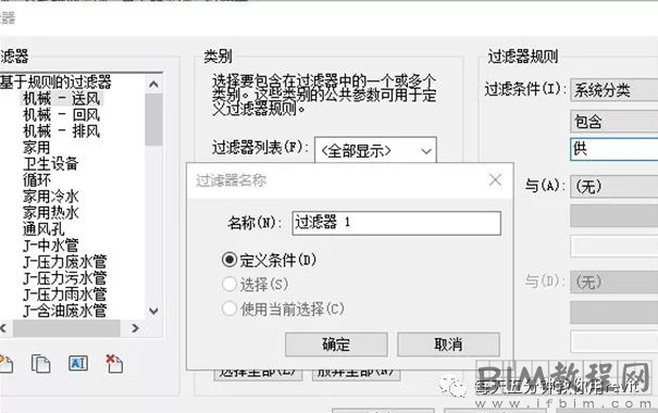 过滤器的应用的意义:建模时往往管线、设备较多,可以将暂不需要的隐藏,同时也可以用来区分类别,如桥架即可在过滤器上设置不同颜色以示区别。
