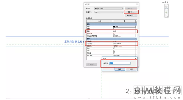 在平面中,如果文字过大,可在编辑族—属性—编辑类型中,复制一个类型,修改名称,再把文字大小修改为与名称同样,点击确定,再把背景改为透明,这样就不会挡住管线了